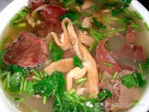 羊杂:羊杂碎是由羊的心、肝、肺、胃、肠等原料混合烩制的。制作羊杂碎还讲究“三料”、“三汤”、“三味”。