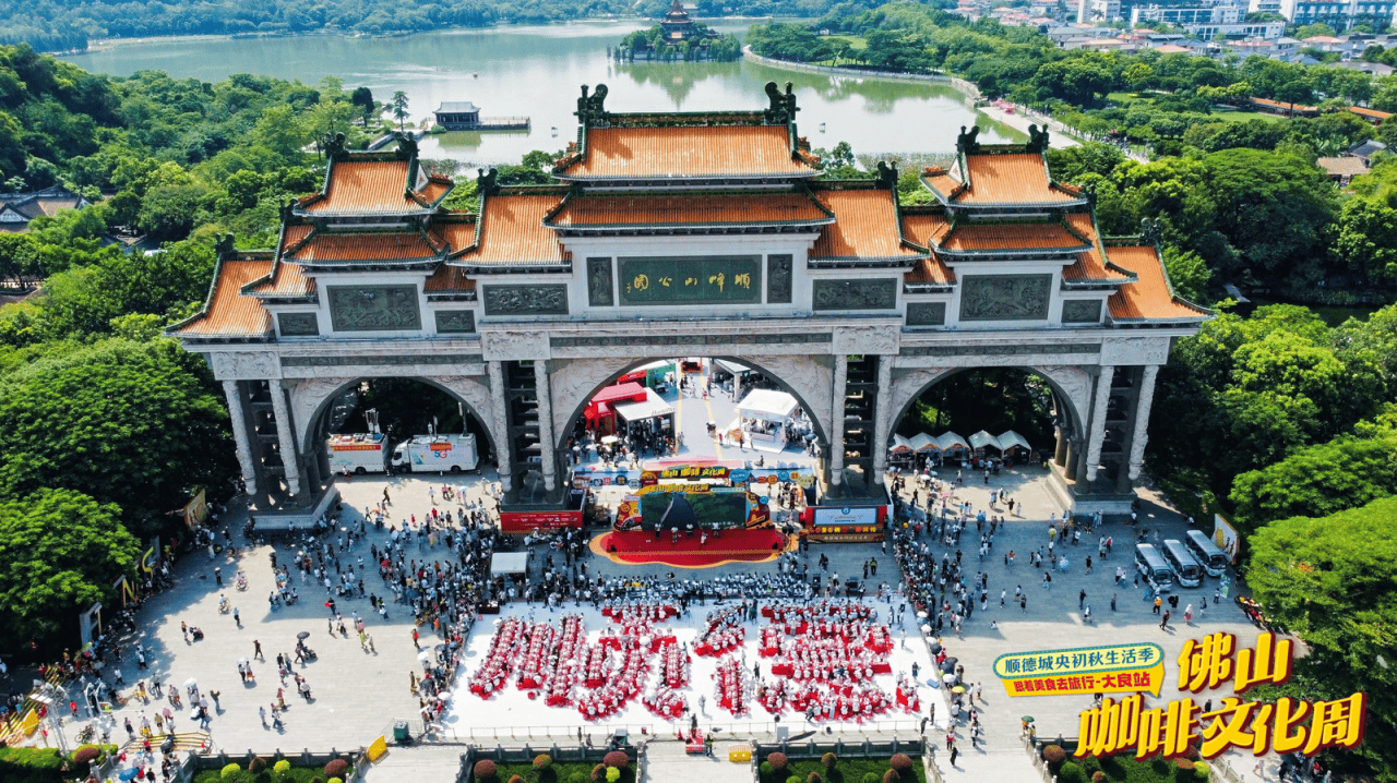 10月1日上午,“2025佛山咖啡文化周”在顺峰山公园牌坊前盛大启幕,300名来自本土及全国的咖啡主理人、拉花冠军和非遗传承人组成“顺德”字样方阵,成功挑战“最多人同时冲煮咖啡”吉尼斯世界纪录。