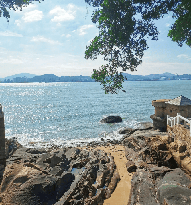 午后,我们参观了日光岩。攀登的过程虽有些辛苦,但站在岩顶俯瞰全岛时,所有疲惫都烟消云散。整座岛屿尽收眼底,红屋顶错落有致地散布在绿树丛中,远处海天一色,几艘帆船点缀其间。傍晚时分,我们坐在港仔后沙滩上,看夕阳将海面染成金黄,钢琴声从远处隐约传来,这一刻,真正体会到了鼓浪屿的浪漫。