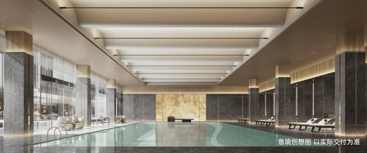 客厅采用大横厅设计,开间达到 6.5 米,空间气势恢宏,搭配全景落地窗,将社区内的生态园林景观尽收眼底,让居者仿佛置身于自然之中。大横厅设计还使得公共活动空间更加灵活,可以根据家庭需求布置成客厅、茶室、影音区等多种功能区域,满足家庭多元化的休闲娱乐需求。