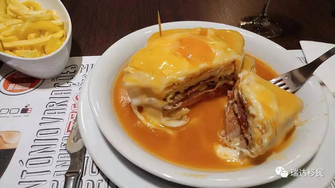 它通常配上一个西红柿,啤酒和辣椒酱。通常煎蛋和薯条作为“伴侣”。奶酪的浓香和火腿完美相融,这款经典菜可是北部城市波尔图的名菜,不过在葡萄牙的其他城市也随处可见。