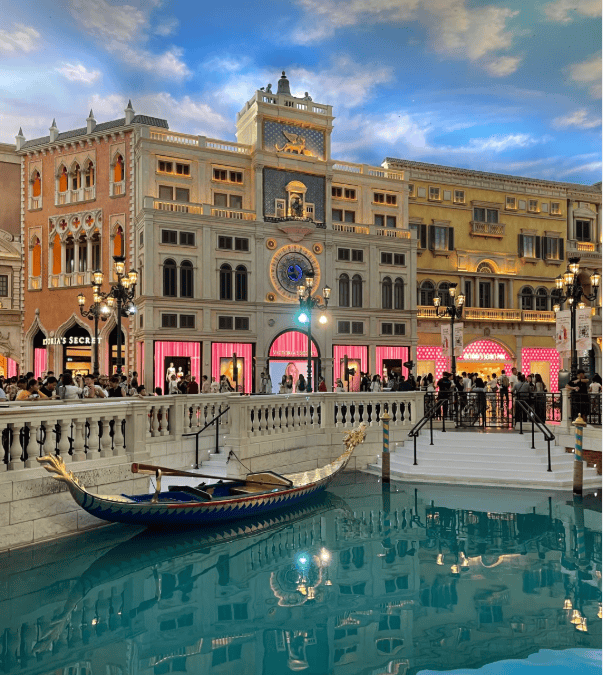 港珠澳大桥在晨雾中若隐若现,55公里的钢铁长龙蜿蜒在翡翠色的海面上。澳门大三巴牌坊的巴洛克浮雕见证着四百年沧桑,炮台山的古炮仍守着这片宁静海湾。金莲花广场的回归纪念雕塑前,内地游客与葡萄牙侨民擦肩而过。妈祖阁的渔船香火袅袅升起时,我们仿佛听见了穿越时空的祈愿。夜晚自费前往威尼斯人度假村,人造运河上贡多拉船夫的歌声飘过拱桥,头顶的蔚蓝天幕永远停留在最宜人的黄昏时分。