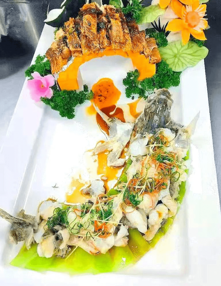 鹊桥会,顾名思义是仙女与爱人的相会。仙女湖全新“全鱼宴”将美丽的爱情故事化为赏心悦目的菜品,重现神话。在这道菜中,香煎鳊鱼酥脆,搭配古法蒸桂鱼的柔嫩,再佐以提鲜开胃的酱汁,简直就是视觉和味蕾的双重福利。