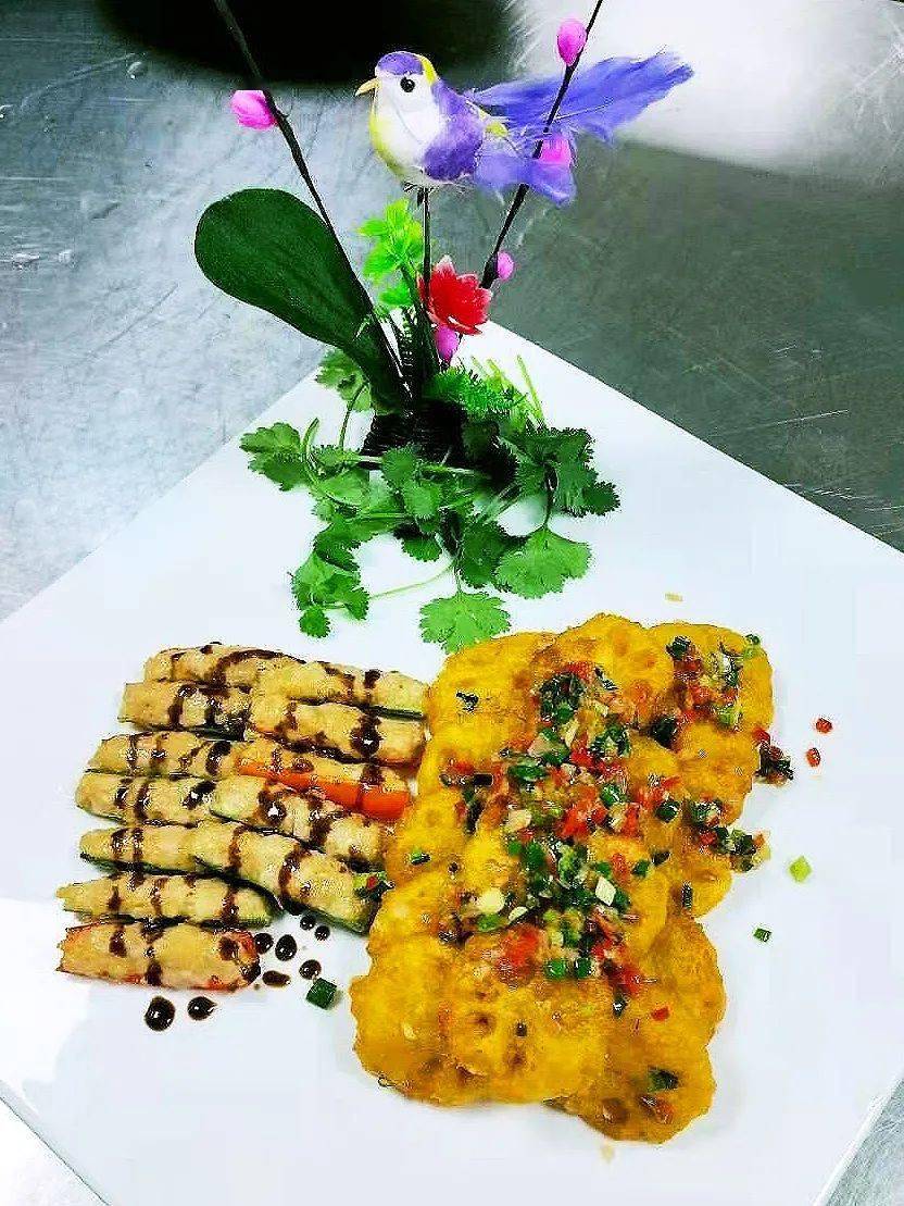 脆!爽!鲜!即是这道藕夹和秋葵的碰撞。想不到的是,这里的藕夹里包裹着鱼肉,秋葵也是由鱼肉包裹,金黄脆口,这道菜用最简单的烹制方式,突显食材专属独特的清新滋味。入口鲜香独具,山野气息扑面而来。