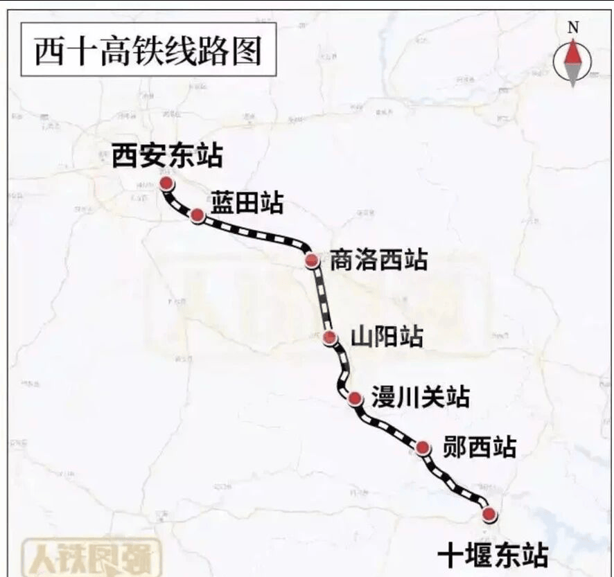 西安至十堰高速铁路(西十高铁)接入既有武汉至十堰高速铁路(汉十高铁),西十高铁开通后,西安至十堰的列车最快运行时间将压缩至1小时内,西安至武汉的列车最快运行时间将由目前的5小时缩短至2.5小时左右。