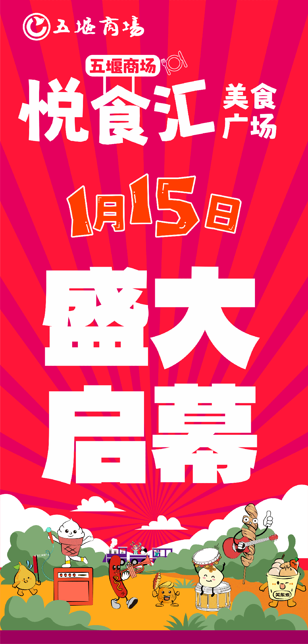 1月15日,五堰商场悦食汇焕新启幕!10万元霸王餐全城免费送,诚意满格,只为等你开席!