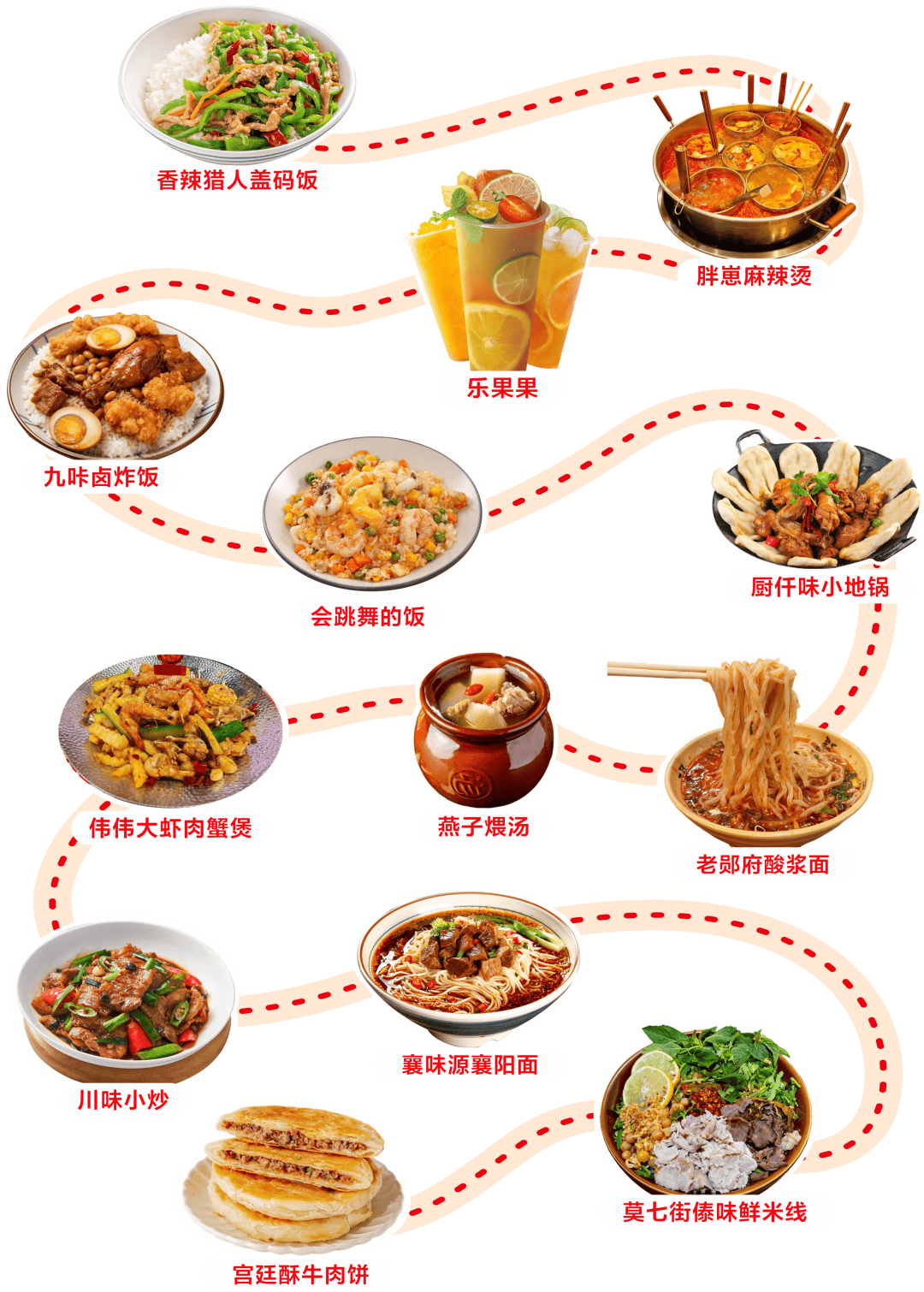南方风味也同样精彩,【莫七街傣味鲜米线】酸辣清爽,【贵州遵义羊肉粉】汤鲜肉嫩,每家店都是不同的舌尖体验。
