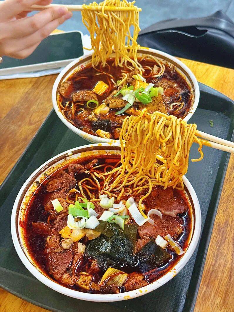 来自襄阳的【陈记襄味牛肉面】更是诱人,一勺香辣红油浇上炖煮入味的牛肉,醇香扑鼻。
