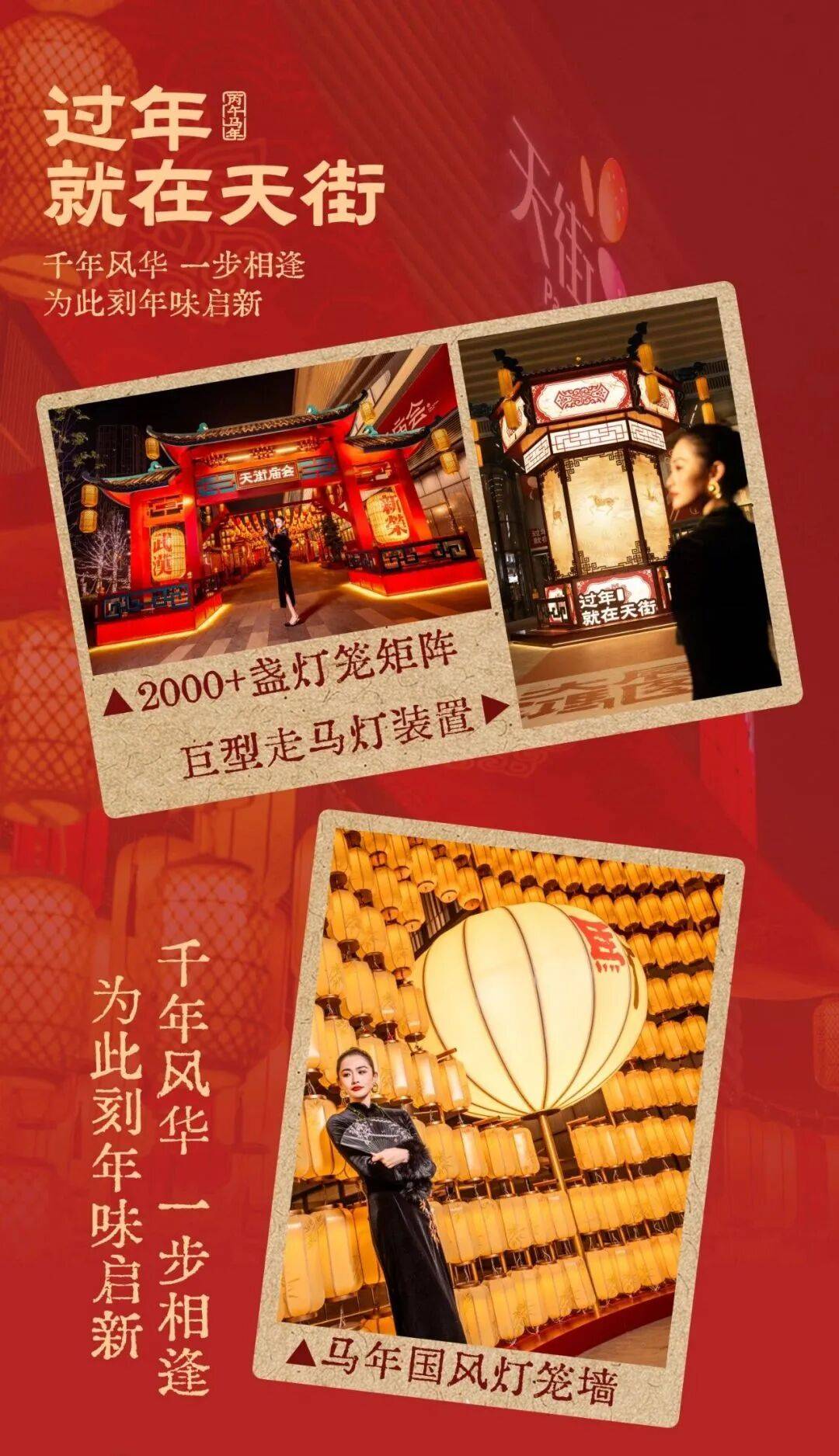 9米巨型走马灯、2000+灯饰长廊氛围感拉满;有古装NPC互动巡游、情人节簪花、元宵灯会等活动,还有蛙得发、皮影戏限定快闪,可预订年夜饭、享受新年限定折扣。