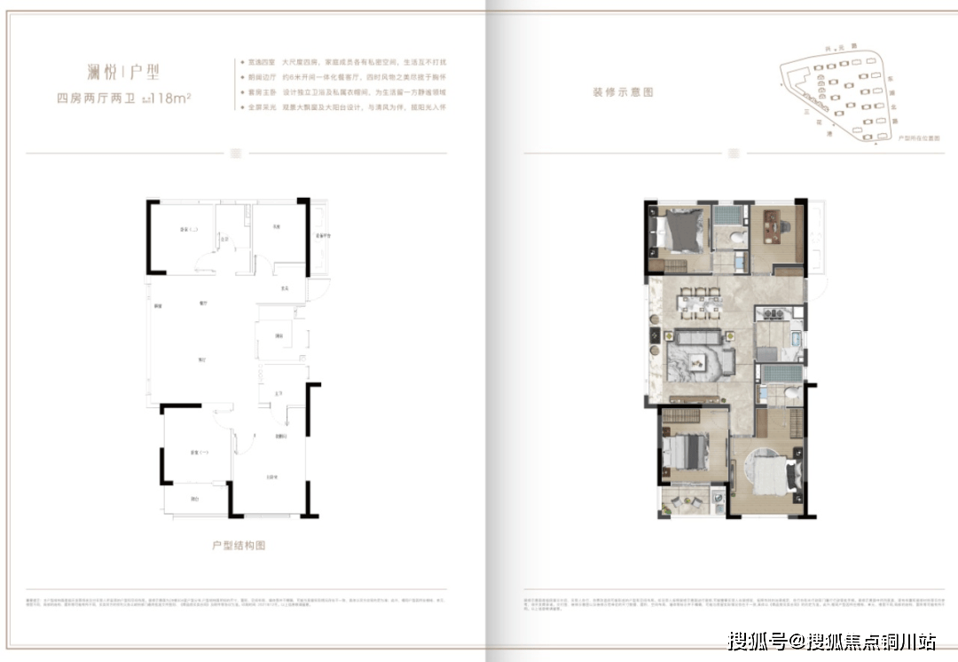118㎡澜悦|四房两厅两卫:约118平户型最为惊艳,全部边套设计。如今市面上的四房如果要追求尺度,基本要130平以上;小面积四房,基本是3+1房设计,数字1大多代表的是像储藏间或衣帽间这样的功能房。但湖沁宸园的118平,是完整四房格局,兼具尺度与功能性。