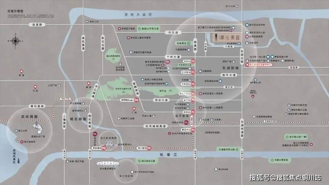 项目位置位于兴元路与东湖北路交叉口,直面运河支流三花港,拥享项目内湖,享受双湖的内外涵养,同时可就近乘坐地铁9号线,速达未来临平高铁北站,紧邻蜗牛广场,周边教育医疗生活配套完善。园区打造一轴五境十三景大美园林,精琢互动式的自然生活场景。