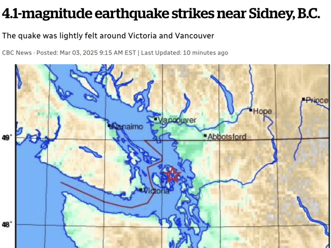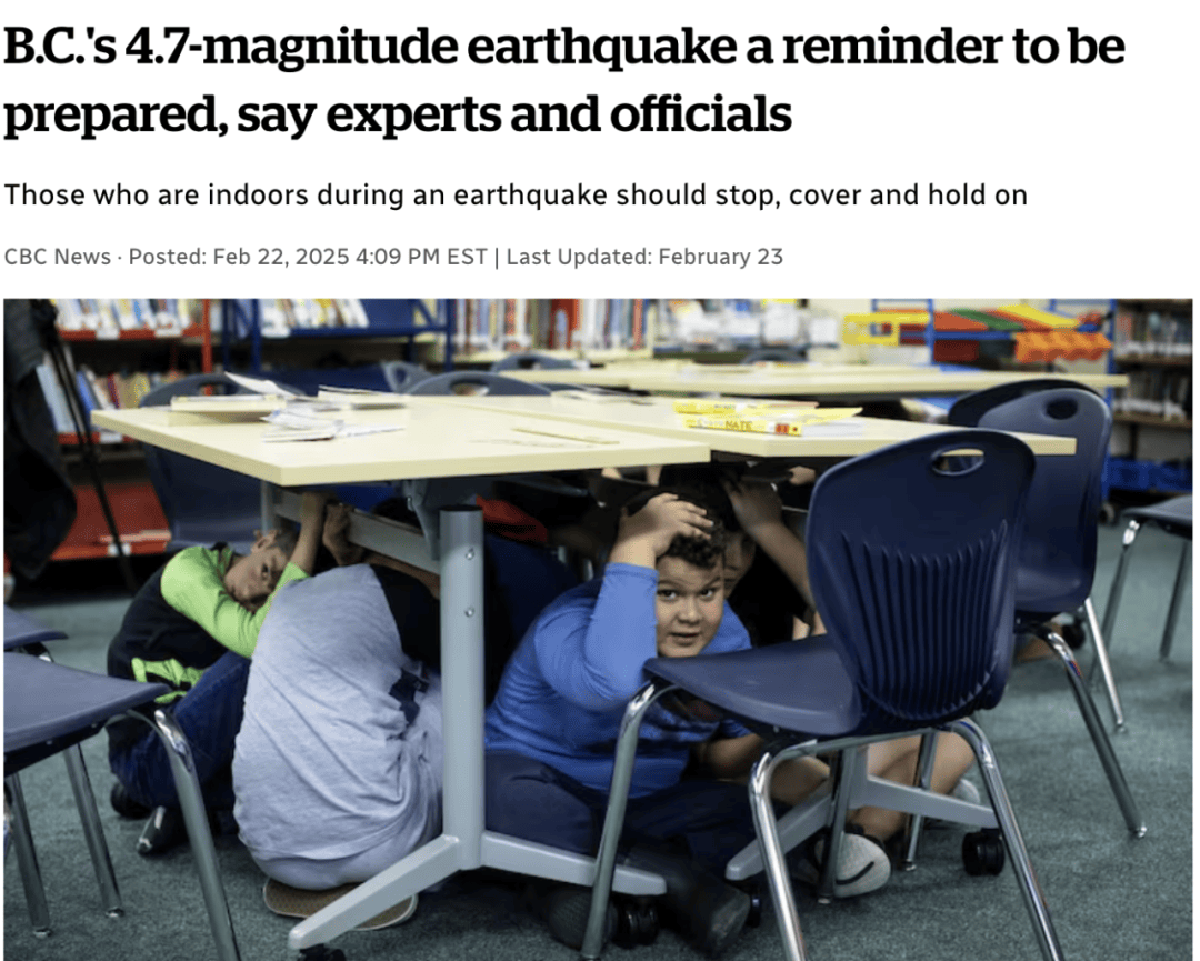德信体育又地震了!加拿大两周内连续地震四次!政府提醒民众储存1-2周的水和食物!随时应急