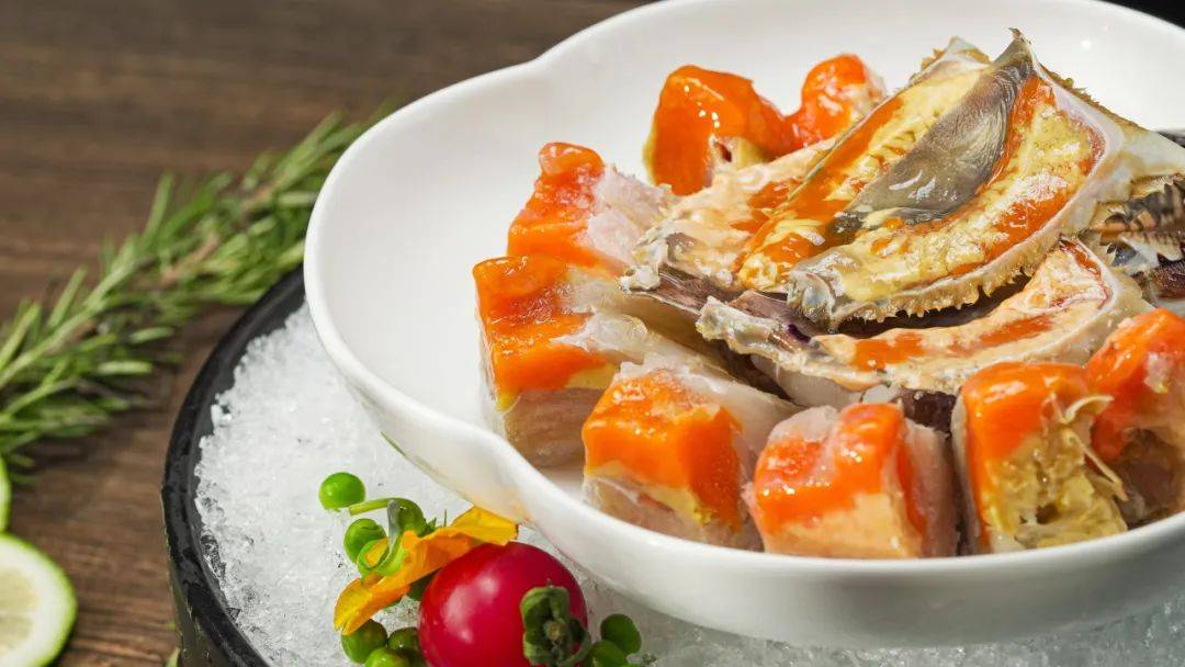 呛蟹,只需要一把海盐,就可以精彩演绎一只蟹的活色鲜香,在吃货眼里算是一个传奇。呛好的螃蟹,蟹膏丰腴润滑,蟹肉色泽晶莹洁白。