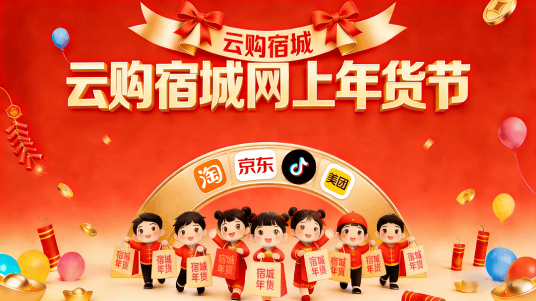 宿城“云购宿迁”网上年货节联动京东、抖音、美团,精选50家电商企业开展满减、拼团、直播抢券矩阵式促销。